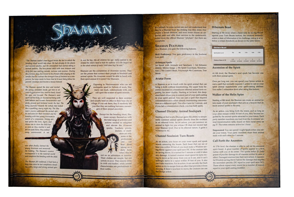 A slew of other systems and rules, including a revamp to backgrounds, new skills, a humongous number of new feats, and all-new classes and subclasses, make up Soulmist.